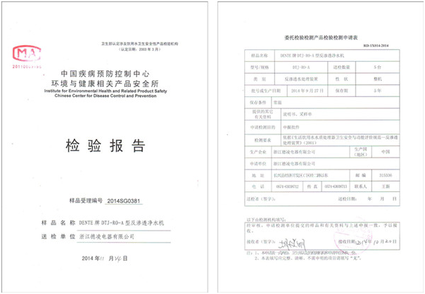 德恩特品牌全系凈水機已通過中國疾病預防控制中心環境與健康相關產品安全所檢驗合格。本月底將全獲得凈水機生產國家衛生批件。