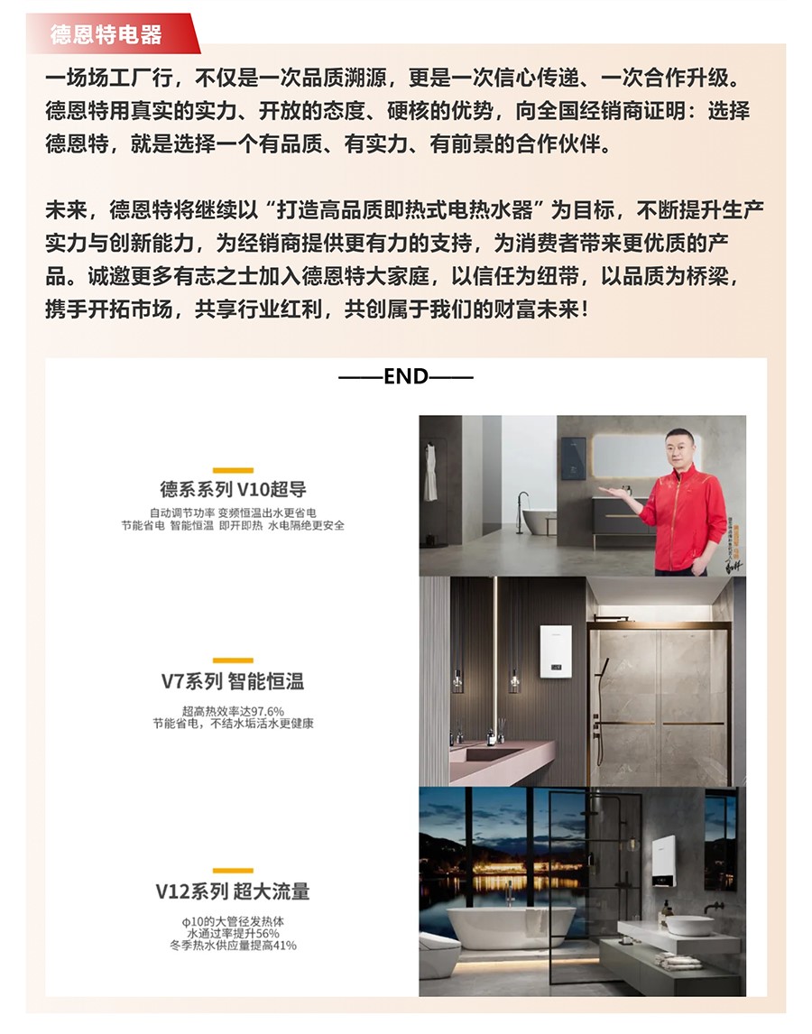 德恩特品牌旗下涵蓋即熱式電熱水器,速熱式電熱水器,快熱式電熱水器品牌和凈水機等